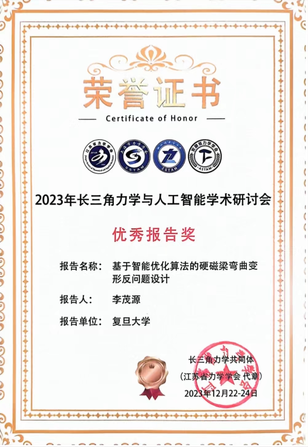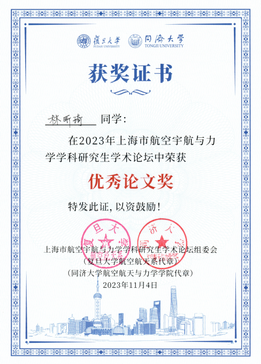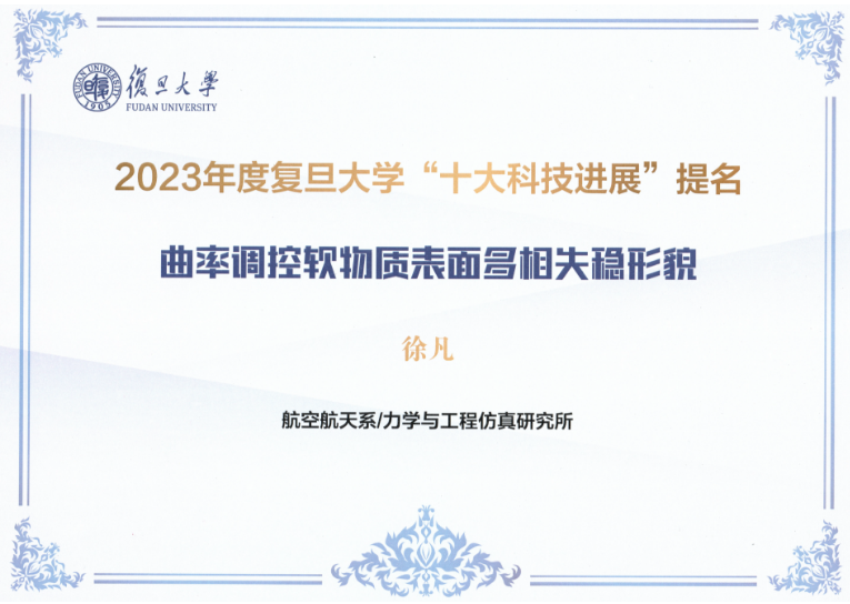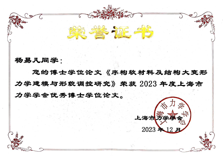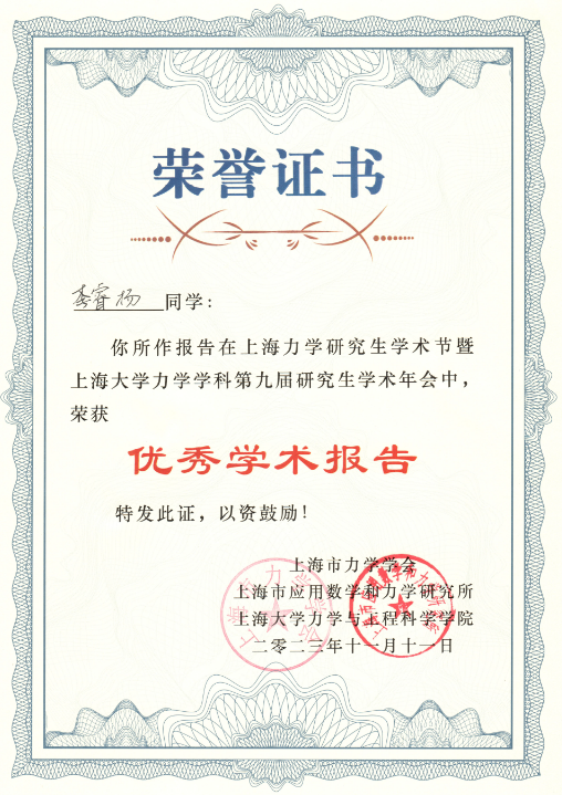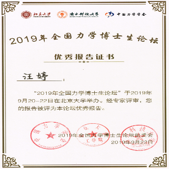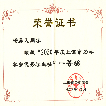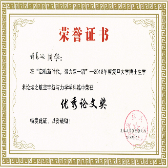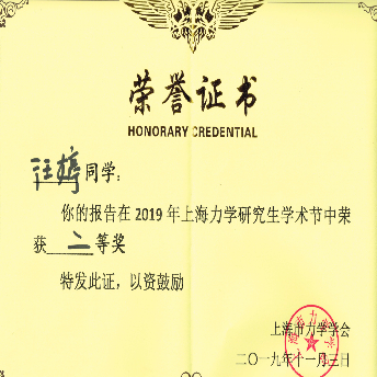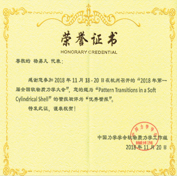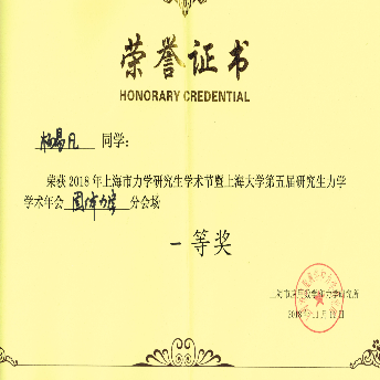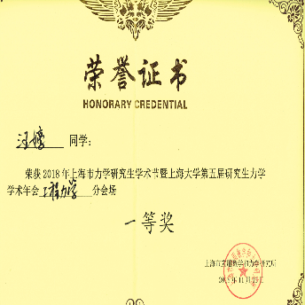 22/12/2018: 祝贺荣获2018年上海市力学学会优秀青年学者!