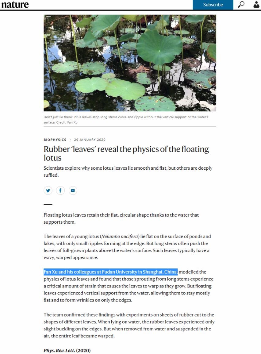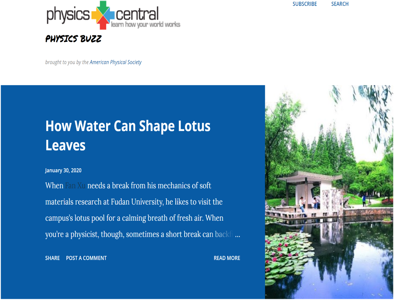30/01/2020: The paper “Water affects morphogenesis of growing aquatic plant leaves” has been highlighted (How water can shape lotus leaves) by Physics Buzz. Great congratulations!