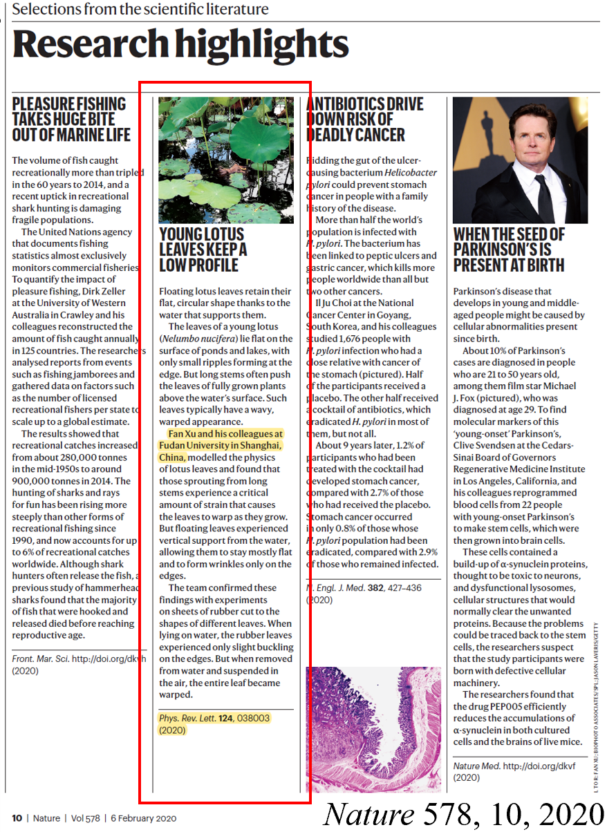 20/01/2017: F. Xu is sponsored by Shanghai Chenguang Program, supported by Shanghai Education Development Foundation and Shanghai Municipal Education Commission, to study mechanics of soft materials.