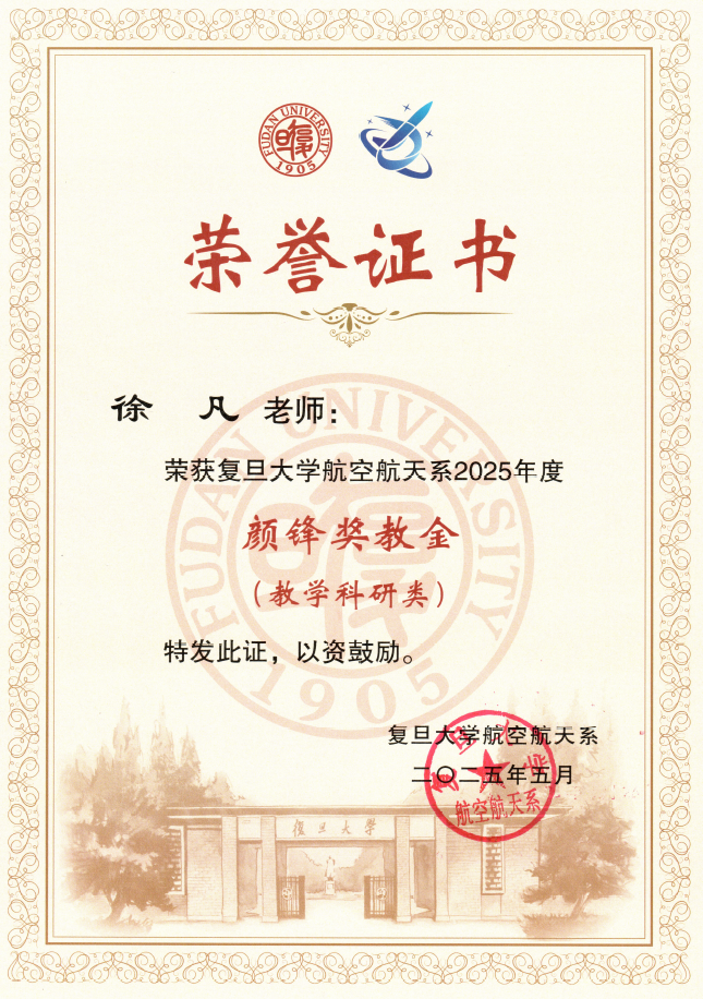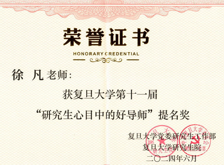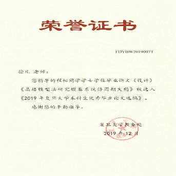 31/12/2019: 祝贺荣获复旦大学本科生优秀毕业论文指导教师奖!