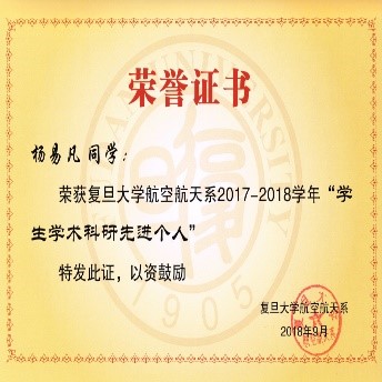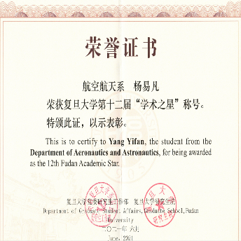 01/06/2021: 祝贺杨易凡荣获复旦大学第十二届“学术之星”称号!
