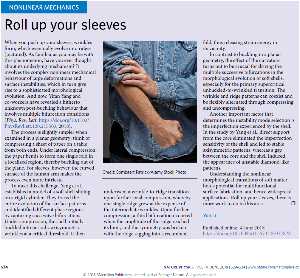 09/06/2021: Our IJES work “Curvature tunes wrinkling in shells” has been highlighted (Mathematically exploring wrinkle evolution) by Nature Computational Science. Congrats!