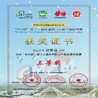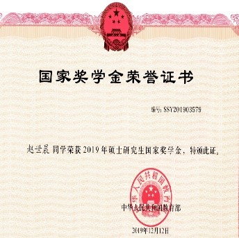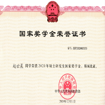 31/12/2020: 祝贺赵世晨荣获“2020年硕士研究生国家奖学金”!