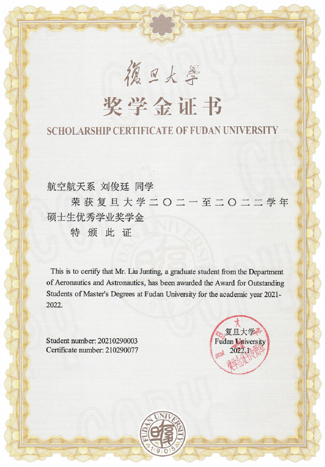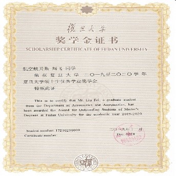 21/05/2020: 祝贺刘飞荣获2020年度复旦大学优秀毕业生!受聘华为(上海)材料与结构工程师!