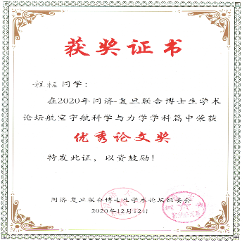 12/12/2020: 祝贺程柘在2020年同济-复旦联合博士生学术论坛中荣获“优秀论文奖”!